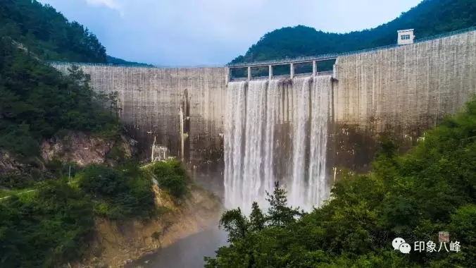 受連日降雨影響,洛江八峰水庫水位急劇上漲,至8月16日凌晨,水庫蓄水至202米高程,庫水經(jīng)溢流口傾瀉而下,在壩前形成一道美麗的瀑布。
