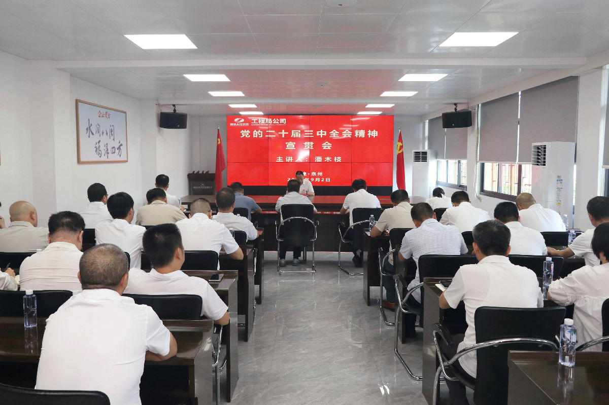 率先垂范,發(fā)揮帶動作用。7月25日,公司黨委理論學(xué)習(xí)中心組學(xué)習(xí)(擴大)會,原原本本學(xué)習(xí)會議公報和《決定》,并結(jié)合工作實際深入研討學(xué)習(xí),部署公司貫徹落實措施。融入日常,營造宣傳氛圍。設(shè)立“聚焦二十屆三中全會”公眾號專欄,轉(zhuǎn)發(fā)《人民日報》等媒體解讀文章、報道公司宣貫全會精神舉措。組織黨員職工積極自學(xué),通過逐字逐句領(lǐng)學(xué)、交流心得研學(xué)、碎片時間自學(xué)等方式,持續(xù)抓好精神學(xué)習(xí)。開展宣講,掀起學(xué)習(xí)熱潮。9月2日,公司黨委書記潘木枝采用“現(xiàn)場+視頻”形式宣講黨的二十屆三中全會精神,要求廣大職工增強改革思維,以解放思想、勇于開拓的創(chuàng)新精神,推動各項改革舉措落實落地,加快公司高質(zhì)量發(fā)展,培育壯大特級企業(yè)優(yōu)勢。