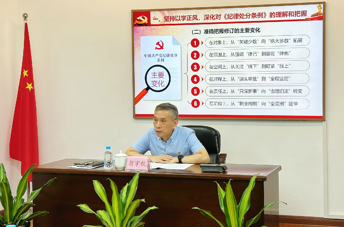隨后,翁宇航以“堅(jiān)持學(xué)紀(jì)知紀(jì)明紀(jì)守紀(jì) 以嚴(yán)明紀(jì)律推動企業(yè)高質(zhì)量發(fā)展”為題講授專題黨課。他強(qiáng)調(diào),閩電投資公司全體黨員干部要堅(jiān)持以學(xué)正風(fēng),深化對《紀(jì)律處分條例》的理解和把握;要堅(jiān)持以案為鑒,深刻汲取集團(tuán)系統(tǒng)違紀(jì)違法案件教訓(xùn);要堅(jiān)持以學(xué)促干,以嚴(yán)明紀(jì)律護(hù)航企業(yè)高質(zhì)量發(fā)展。