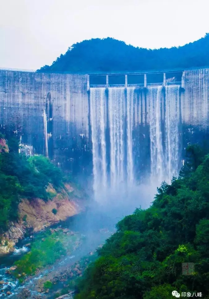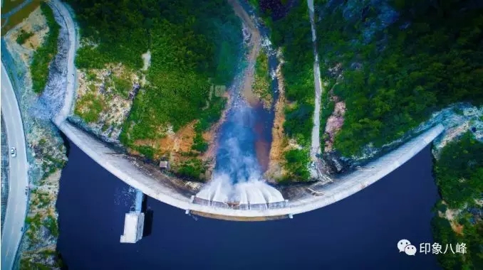 受連日降雨影響,洛江八峰水庫水位急劇上漲,至8月16日凌晨,水庫蓄水至202米高程,庫水經(jīng)溢流口傾瀉而下,在壩前形成一道美麗的瀑布。